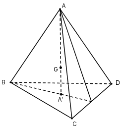 Gọi G là trọng tâm tứ diện ABCD và A’, B’, C’, D’ lần lượt là trọng tâm các tam giác BCD, ACD, ABD, ABC. Gọi \(V\left( {G; – {1 \over 3}} \right)\) là phép vị tự tâm G tỉ số \(k =  – {1 \over 3}.\) Ta có: \(\overrightarrow {GA’}  =  – {1 \over 3}\overrightarrow {GA} .\)