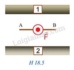 Đoạn dây dẫn AB có dòng điện chạy qua đặt trong từ trường của một nam châm như hình H18.5. Gọi 1 và 2 là kí hiệu tên các cực từ của nam châm. Xét các trường hợp sau: