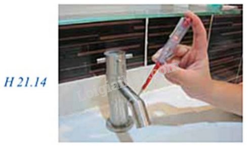 Người ta dùng bút thử điện để kiểm tra vòi sen, vòi nước kim loại của một máy nước nóng trong nhà tắm có bị dò điện hay không khi nối máy với mạng điện gia đình (hình H21.14). Để thực hiện, người ta dùng bút kiểm tra trước một ổ cắm điện trong nhà rồi mới dùng bút kiểm tra máy. Em hãy giải thích cách làm đó?
