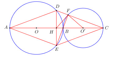 a) Chứng minh rằng đường tròn (O) và (O’) tiếp xúc ngoài tại B.