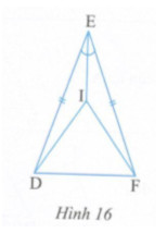 Cho hình 16, biết ED = EF ; EI là tia phân giác của \(\widehat {DEF}.\)