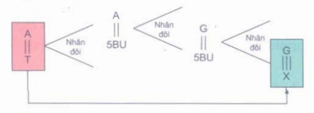 – Tác nhân hóa học: chất 5-brom uraxin (5BU) là chất đồng đẳng của timin gây biến đổi thay thế A-T ⟶ G-X