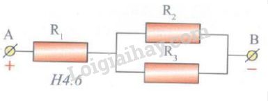 Cho mạch điện có sơ đồ như hình H4.6, trong đó R1 = R2 = R3 = R. Điện trở tương đương của đoạn mạch là R = \(120\Omega \). R có giá trị là: