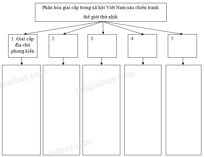 Giải bài 2 trang 49 sách bài tập Lịch sử 9. Hãy hoàn thiện sơ đồ sau về sự phân hóa giai cấp trong Xã hội Việt Nam