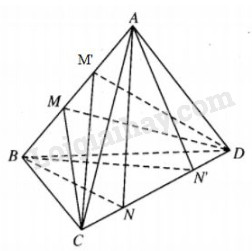Khi đó 4 mặt phẳng (ABN), (ABN’), (CDM), (CDM’) sẽ phân chia khối tứ diện ABCD thành 9 khối tứ diện.