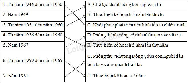 Hãy nối ô bên trái với ô bên phải sao cho phù hợp với nội dung lịch sử Liên Xô