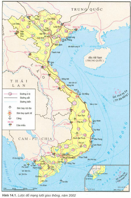 Dựa vào hình 14.1, hãy kể tên và xác định các quốc lộ chính.