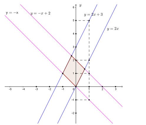 b) Tứ giác tạo bởi bốn đường thẳng trong câu a) là hình bình hành vì có 2 cặp đường thẳng song song với nhau.