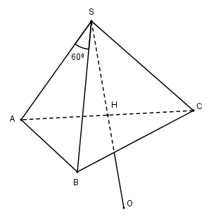 Lại có SH là trục đường tròn ngoại tiếp tam giác ABC và \(O \in SH\) nên \(OA = OB = OC = a\).
