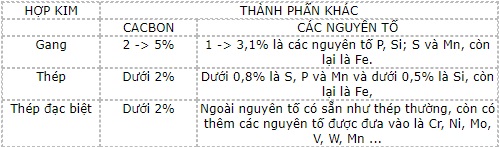 So sánh hàm lượng các nguyên tố trong gang và thép.