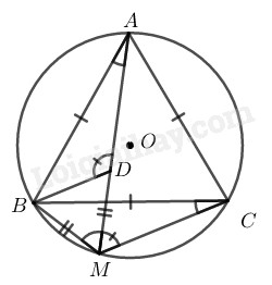 Cho tam giác đều \(ABC\) nội tiếp đường tròn \((O)\) và \(M\) là một điểm của cung nhỏ \(BC.\) Trên \(MA\) lấy điểm \(D\) sao cho \(MD = MB.\)