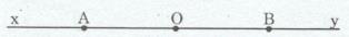 Mà \(A \in Ox,B \in Oy\). Nên OA và OB là hai tia đối nhau \(\Rightarrow\) O nằm giữa A và B