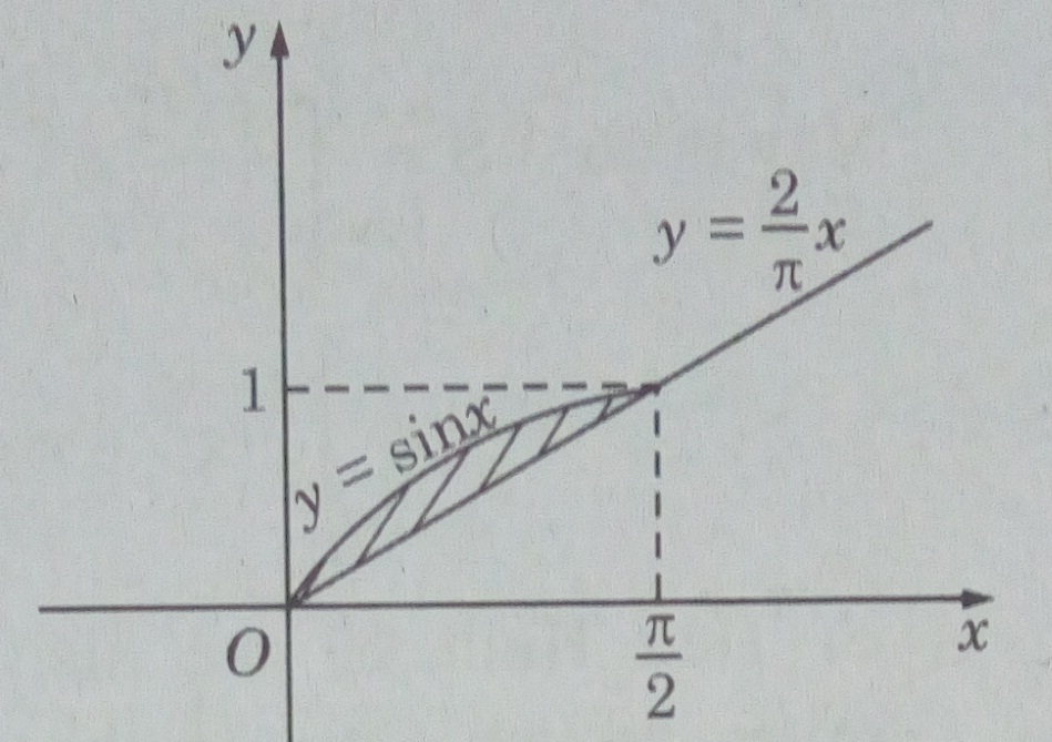 \(y = {2 \over \pi }x;y = \sin x;x \in {\rm{[}}0;{\pi  \over 2}{\rm{]}}\)