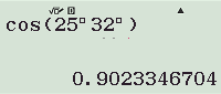 b) \(\cos25^{\circ}32’\) \(\approx 0,9023\);