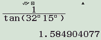 d) \(\cot 32^{\circ}15’\) \(\approx 1,5849\).