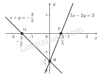 Cho \(y = 0 \Rightarrow x = \displaystyle {3 \over 5}\) ta được \(P\displaystyle \left( {{3 \over 5};0} \right)\)