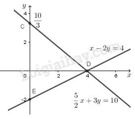 Cho \(y = 0 \Rightarrow x = 4\) ta được \(D\left( {4;0} \right)\).