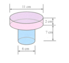 Hình trụ thứ nhất có bán kính đáy \({R_1} = 5,5cm\), chiều cao \({h_1} = 2cm\)