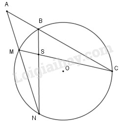 Qua điểm \(A\) nằm bên ngoài đường tròn \((O)\) vẽ hai cát tuyến \(ABC\) và \(AMN\) sao cho hai đường thẳng \(BN\) và \(CM\) cắt nhau tại \(S\) nằm bên trong đường tròn. Chứng minh
