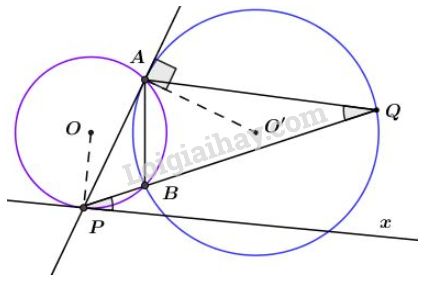 Xét đường tròn \((O’)\) ta có: \(\widehat {AQB} = \widehat {PAB}\)   (góc nội tiếp và góc tạo bởi tia tiếp tuyến và dây cung cùng chắn cung \(AB\)).(1)