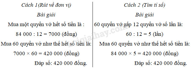 Số quyển vở và số tiền mua vở là hai đại lượng tỉ lệ thuận với nhau. Số quyển vở gấp lên (hoặc giảm đi) bao nhiêu lần thì số tiền mua vở cũng gấp lên (hoặc giảm đi) bấy nhiêu lần.
