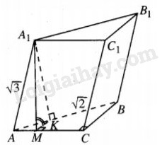 Kẻ \(KM \bot AC\) thì \({A_1}M \bot AC\) (định lí ba đường vuông góc ), do đó \(\widehat {{A_1}MK}\) = 600,