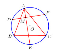 Giải bài tập Cho tam giác ABC nội tiếp đường tròn (O). Gọi D, E, F theo thứ tự là điểm chính giữa các cung
