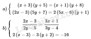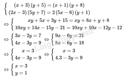 Giải bài 3.1, 3.2, 3.3, 3.4 phần bài tập bổ sung trang 16 sách bài tập toán 9. Giải các hệ phương trình: a) (x + 3)(y + 5) = (x + 1)(y + 8) và (2x – 3)( 5y + 7) = 2(5x – 6)(y + 1); …
