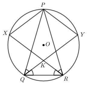 Suy ra các cung \(PX,PY,QX,RY\) bằng nhau (các góc nội tiếp bằng nhau chắn các cung bằng nhau)