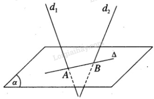 Gọi A và B lần lượt là giao điểm của \({d_1}\) và \({d_2}\) với \((\alpha )\).