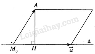 Ta có \(\overrightarrow {{M_0}A}  = (0;0;1),\)\(\overrightarrow n  = \left[ {\overrightarrow u ,\overrightarrow {{M_0}A} } \right] = (2; – 2;0)\)