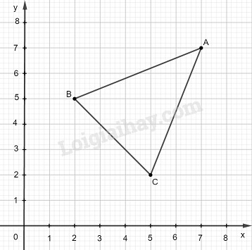 Trên mặt phẳng tọa độ \(Oxy\) cho ba điểm A, B, C có tọa độ như sau: A (7; 7), B(2, 5), C (5; 2).