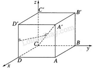 Trong hệ tọa độ vừa chọn ta có: C(0; 0; 0), A’(a; a ; a), D(a,; 0;0), D’(a; 0; a)