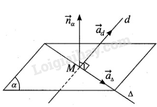 Gọi \(\overrightarrow {{u_\Delta }} \) là vecto pháp tuyến của \(\Delta \), ta có \(\overrightarrow {{u_\Delta }}  \bot \overrightarrow {{n_\alpha }} \) và \(\overrightarrow {{u_\Delta }}  \bot \overrightarrow {{u_d}} \).
