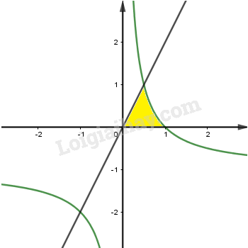 \(\displaystyle  y = \frac{1}{x} – 1,y = 0,y = 2x\), quanh trục \(\displaystyle  Ox\)