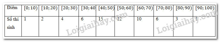 Điểm thi môn Toán (thang điểm 100, điểm được làm tròn đến 1) của 60 thí sinh được cho trong bảng sau: