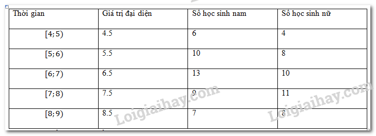a) So sánh thời gian ngủ trung bình của các bạn học sinh nam và nữ.