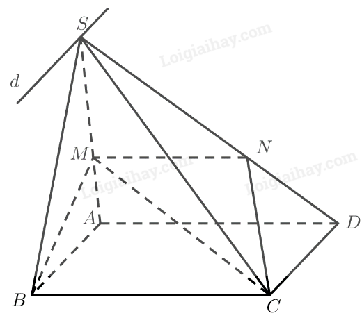 b) Lấy một điểm \(M\) trên đoạn \(SA\) (\(M\) khác \(S\) và \(A\)), mặt phẳng \(\left( {BCM} \right)\) cắt \(SD\) tại \(N\). Tứ giác \(CBMN\) là hình gì?