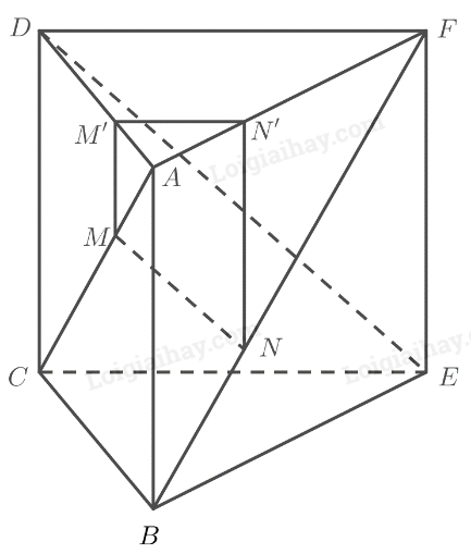 \(\left. \begin{array}{l} \Rightarrow \frac{{AM’}}{{A{\rm{D}}}} = \frac{{AN’}}{{AF}} \Rightarrow M’N’\parallel DF\\M’N’ \subset \left( {MNN’M’} \right)\end{array} \right\} \Rightarrow DF\parallel \left( {MNN’M’} \right)\)