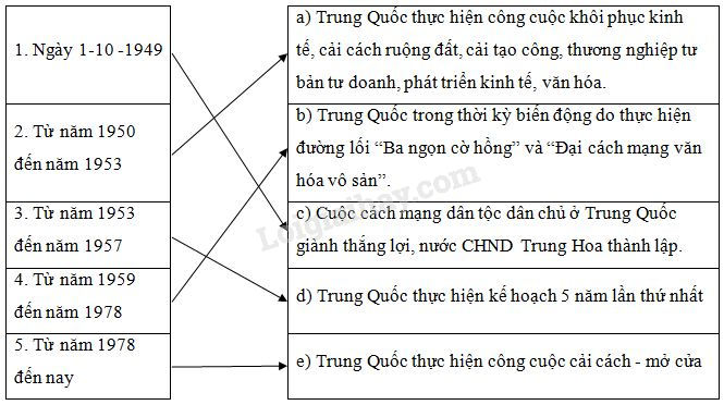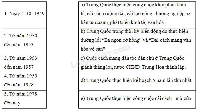 Giải bài tập 3 trang 14 sách bài tập sử 9. Hãy nối các ô bên phải với ô bên trái sao cho phù hợp
