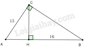 Xét tam giác \(ABC\) vuông tại \(C\) có \(CH\) là đường cao nên ta có \(A{C^2} = AH.AB \Leftrightarrow {15^2} = x\left( {x + 16} \right)\)