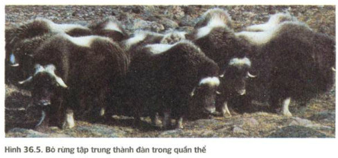 Đàn bò rừng tập trung nhau lại như trong hình 36.5 SGK biểu hiện mối quan hệ hỗ trợ trong quần thể, nhờ đó bò rừng cảnh giác với kẻ thù rình rập xung quanh và chống lại chúng tốt hơn.