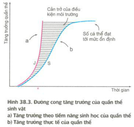 Đường cong biểu thị tăng trưởng của quần thể: thoạt đầu tăng nhanh dần, sau đó tốc độ tăng trưởng của quần thể giảm đi, đường cong chuyển sang ngang, có thể giảm sút (hình chữ S).