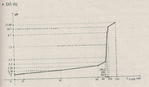Từ các số liệu sau hãy vẽ biểu đồ biểu thị sự biến thiên pH của dung dịch trong quá trình chuẩn độ dung dịch HCl 0,100M bằng dung dịch NaOH 0,100M. Trục hoành ghi thể tích dung dịch NaOH , trục tung ghi pH của dung dịch . Đường biểu diễn trên đồ thị đó gọi là đường định phân.