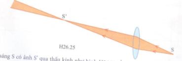 – Trong hình 26.25, ảnh S’ là ảnh thật, vì chùm tia ló hội tụ và ảnh hiện sau thấu kính. Mắt đặt tại vùng có chùm tia ló sau ảnh S’.