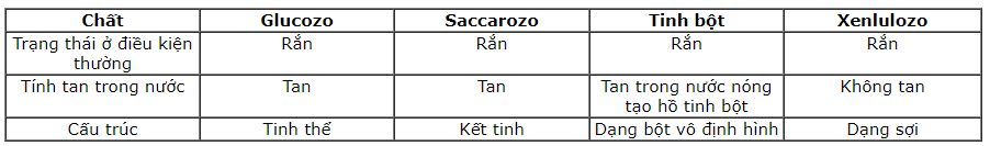 a) So sánh tính chất vật lý của glucozơ, saccarozơ, tinh bột và xenlulozơ