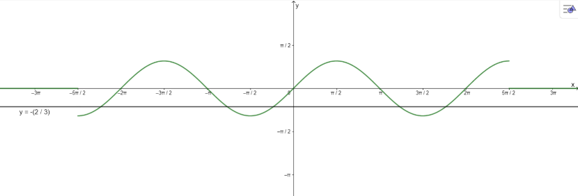 a)     \(3\sin x + 2 = 0\) trên đoạn \(\left( { – \frac{{5\pi }}{2};\frac{{5\pi }}{2}} \right)\)