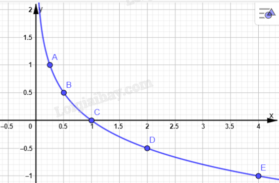 Đồ thị hàm số: \(y = {\log _{\frac{1}{4}}}x\)