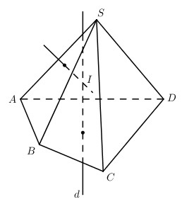 hay điểm \(I\) cách đều các đỉnh của hình chóp, do đó \(I\) là tâm mặt cầu đi qua các đỉnh của hình chóp.