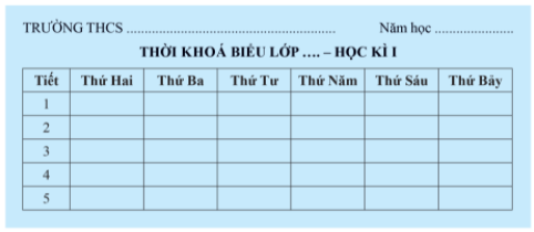 1. Cần xác định xem thời khoá biểu cần tạo gồm bao nhiêu hàng và cột.